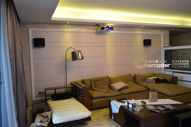 用戶十分熱愛電影,即使是在客廳,也想擁有一套震撼的影院系統(tǒng)。雖然是常規(guī)高層,但由于客廳面積充足,根據(jù)合理的觀看距離,一樣配置了150寸大屏幕,配合愛普生的3D投影,客廳也一樣完美的搭建為專業(yè)影院,下面分享完工后的實(shí)拍圖。