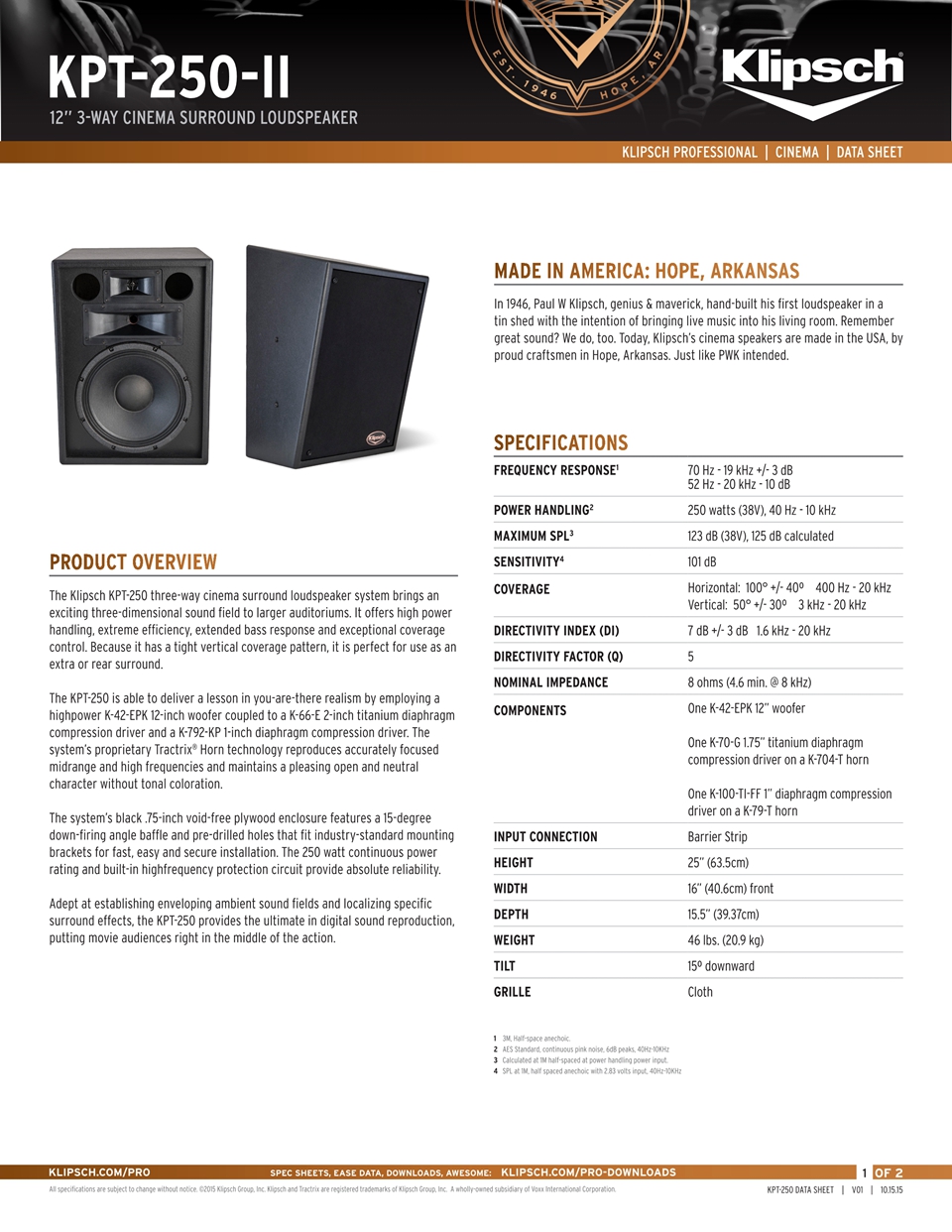 一個(gè)高效率的三路環(huán)繞揚(yáng)聲器設(shè)計(jì)用于高效率的控制。KPT-250 提供了大功率、極高的效率、擴(kuò)展的低頻響應(yīng)和卓越的覆蓋范圍控制。作為數(shù)碼聲音重放的終極產(chǎn)品,系統(tǒng)采用了Tractrix 號(hào)角技術(shù)、15° 下?lián)P角度、內(nèi)部金屬安全加強(qiáng)托架、3/4吋密實(shí)膠合板箱體,為行業(yè)標(biāo)準(zhǔn)的安裝托架而預(yù)先鉆孔,高頻保護(hù)電路。