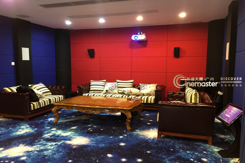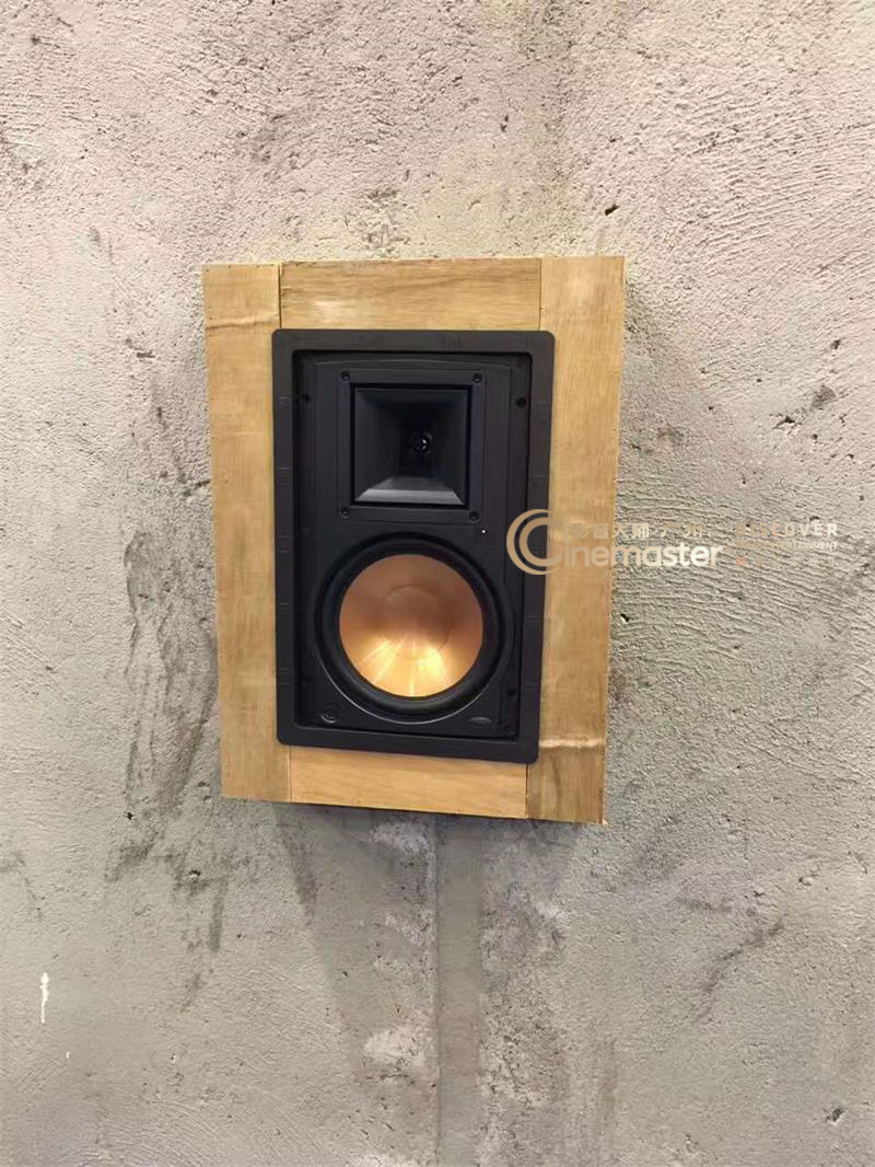 音箱系統的前置音箱隱藏在幕布后方,墻面沒有做太多的裝飾,安裝音箱的箱體只需要10cm厚度