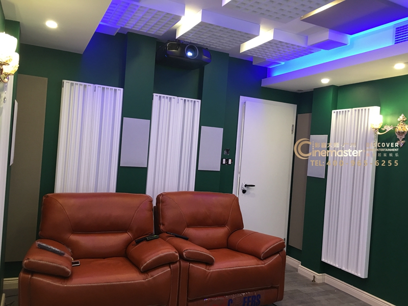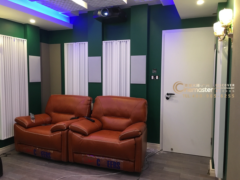用戶(hù)十分喜歡看電影,聽(tīng)無(wú)損高音質(zhì)音樂(lè),還要觀看大屏賽事,對(duì)觀影音箱和卡拉OK音箱要求都較高。不過(guò)影音房相對(duì)較小,我們的設(shè)計(jì)師只能盡量把房間最大化利用。對(duì)于面積較小,高度較低的小空間而言,聲學(xué)則是最難處理的,特別是低頻部分,稍微處理不好就容易使低頻聚集在一起。好在本次聲學(xué)材料有香港著名聲學(xué)廠家聲博士(Soundbox)助陣,使得最終我們的小房間也發(fā)揮出完美的音效。此影音房還是用了當(dāng)下最新的智能技術(shù),一鍵打開(kāi)電影模式,自動(dòng)智能燈光,智能遙控......下面分享安裝完工實(shí)拍圖。