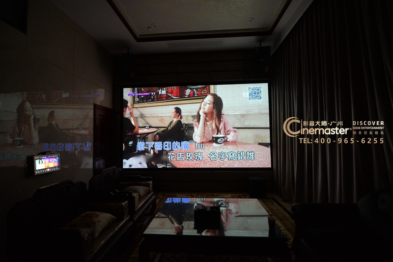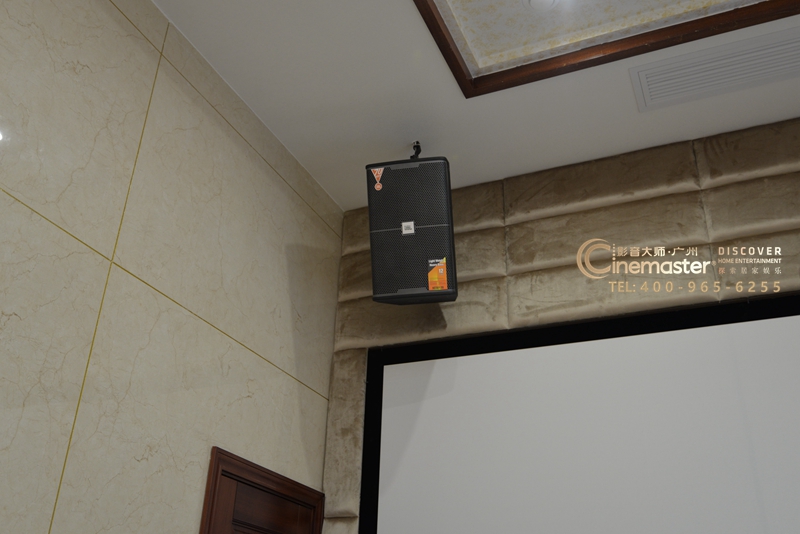JBL 70周年紀念版KES6120 12寸音箱使用螺紋桿吊頂安裝;影音房空間比較高,也比較長,我們是建議使用2對卡拉OK音箱,聲音會比較飽滿且包圍感更好;但由于用戶只是普通娛樂,需要控制預算,所以只使用了一對卡拉OK音箱,最終調試完成覺得低音有些單薄,我們工程師的解決辦法是把家用的2個低音炮也接入到卡拉OK系統共用,這樣在唱歌的時候低頻就比較飽滿,人聲也足夠厚實。
