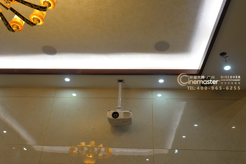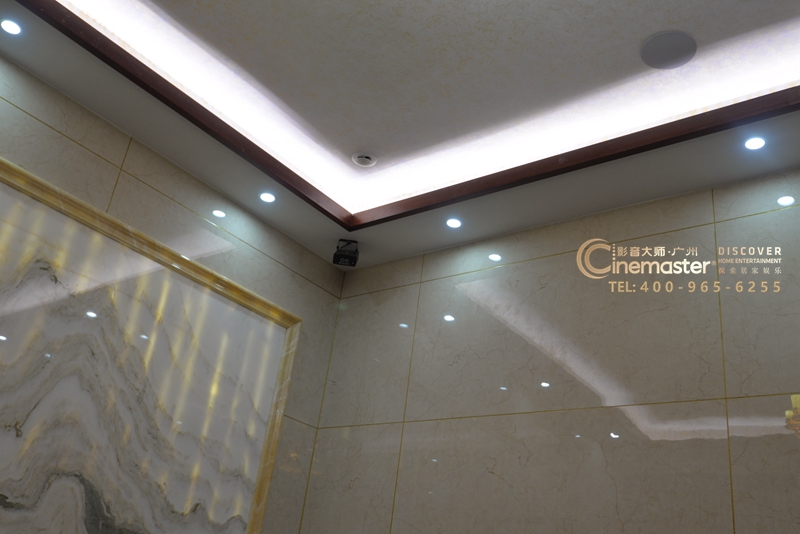 由于墻面貼了大理石,所以側環繞及后環繞都選用了吸頂安裝;杰士/klipsch DS-160C吸頂音箱