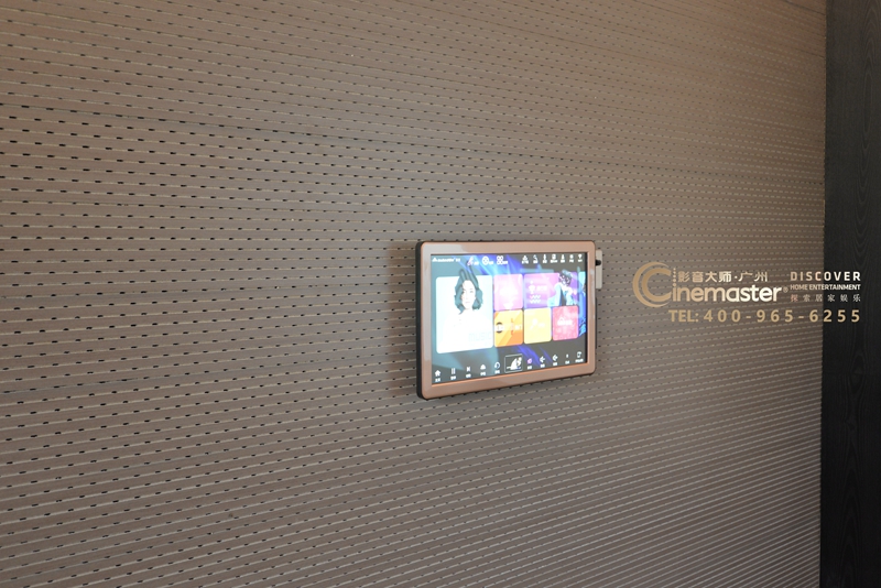用戶影音房比較長,高度也比較高,因此沙發設計了兩排,第二排做了抬高設計。用戶對影院要求比較高,影院系統采用了7.2.4杜比全景聲配置,卡拉OK則采用2只12寸的全頻箱搭配2只10寸全頻箱。頂部只做了簡單的造型設計,聲學部分采用了傳統的聲學設計,內嵌吸音棉,墻面封沖孔吸音板處理。整個房間的色調采用的是比較簡約的灰色系,前置音箱均隱藏在屏幕后方。下面分享實拍圖片。