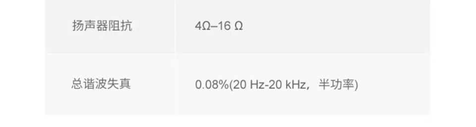 單聲道80W(8 Ohms 20-20kHz,0.08%THD,雙通道驅動,FTC)