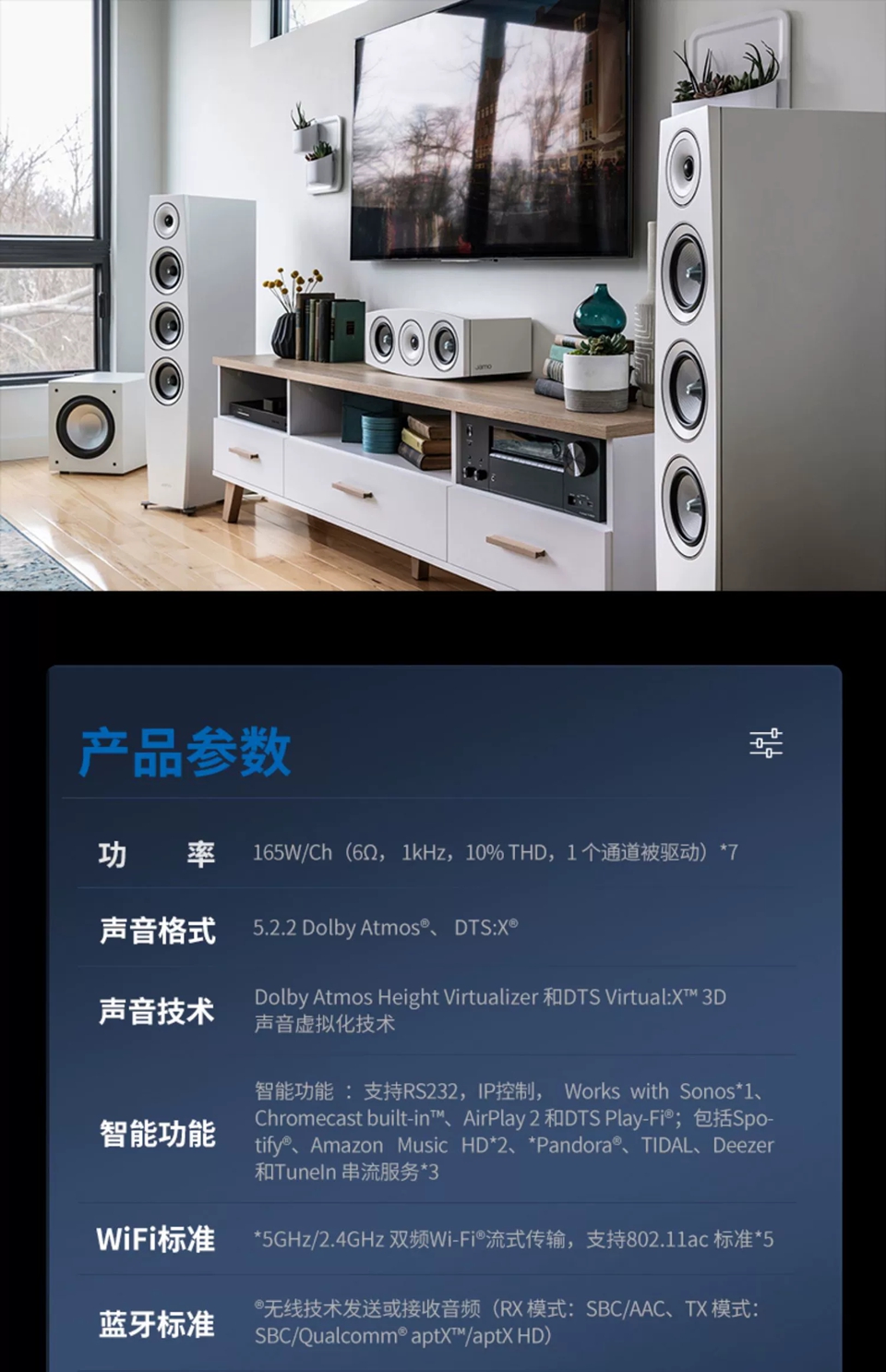 WIFI功能,APP控制,AirPlay2,DTS Play-Fi