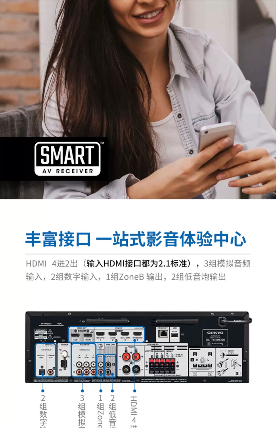 連接:HDMI 2.1(8K分辨率)、USB、模擬、光纖、同軸、藍牙
