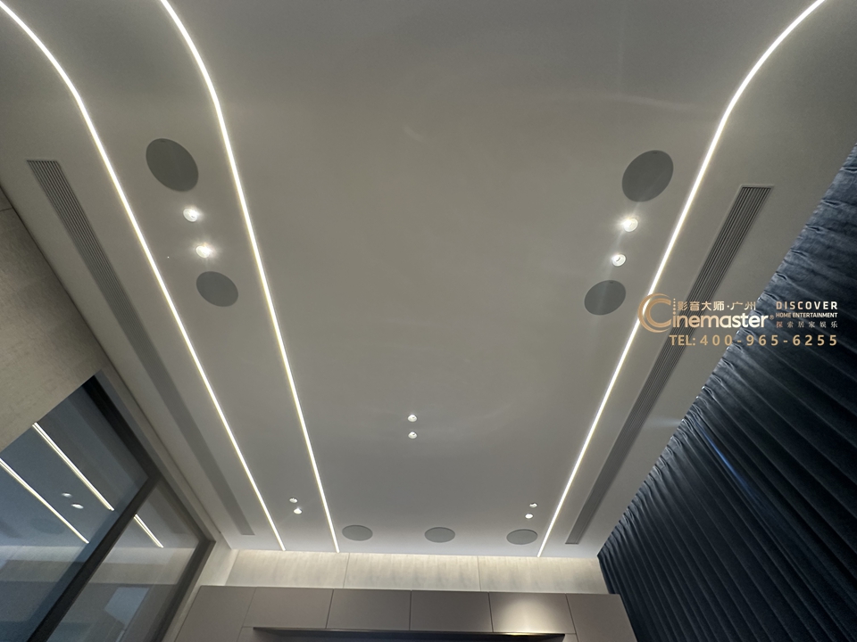 主音箱、中置音箱、環繞音箱均嵌入到天花,做到與天花合二為一,確保簡潔美觀
