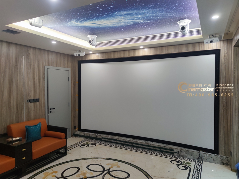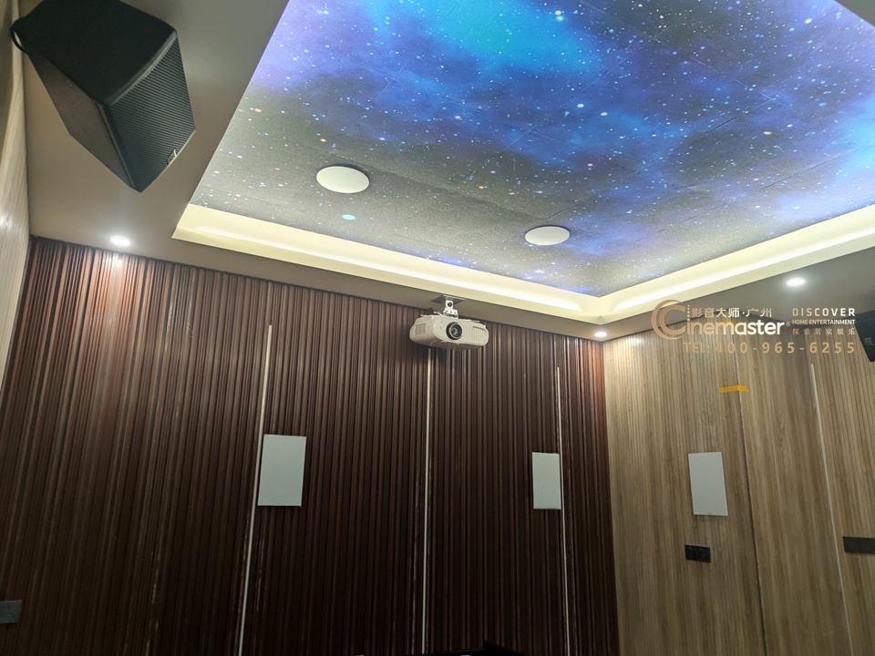 而天花板的處理,更是我們匠心獨運的體現。我們摒棄了傳統的單調設計,轉而采用了最新的星空點綴技術。這些星空點綴不僅美觀至極,更巧妙地融入了吸音設計,與墻面吸音板相輔相成,共同構建了一個全方位、立體化的吸音系統,讓觀影時的聲音效果更加飽滿、立體,仿佛置身于真實的電影場景中。