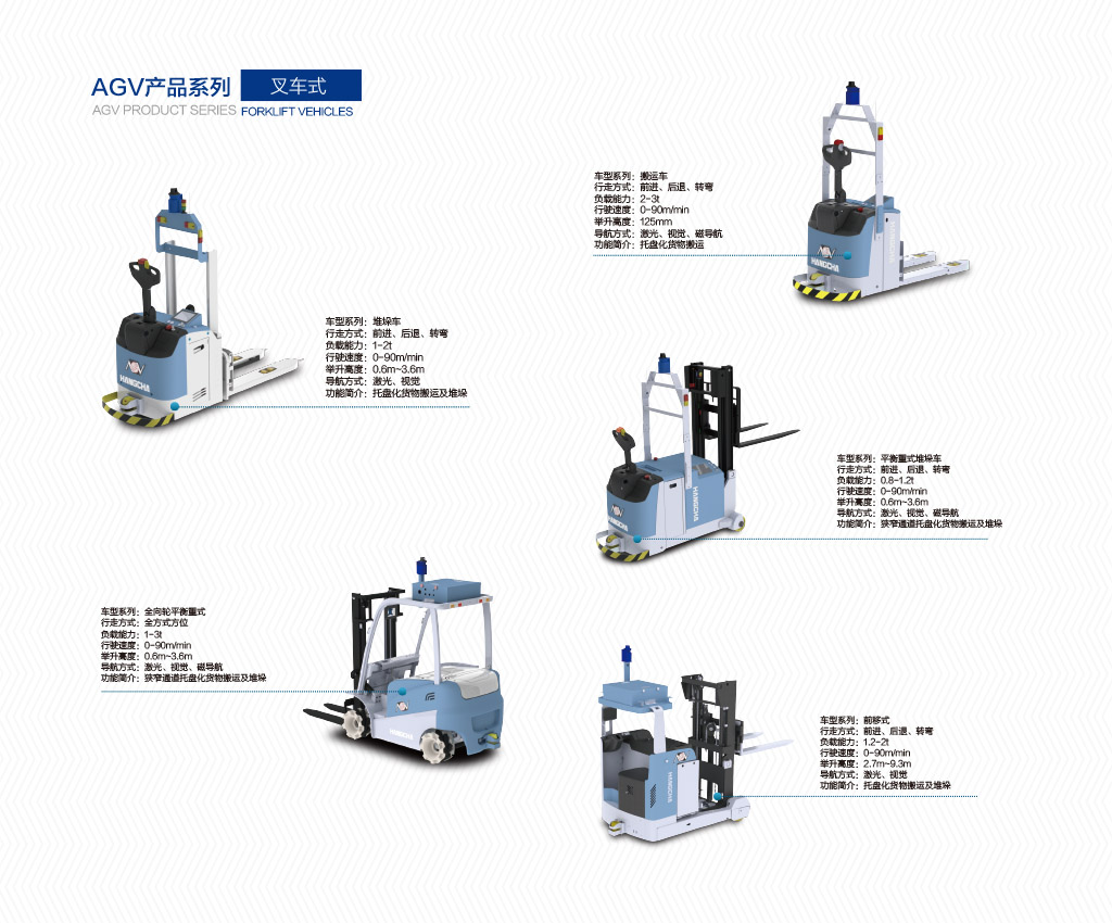 AGV是自動導(dǎo)引運輸車(Automated Guided Vehicle)的英文縮寫。指裝備有電磁或光學(xué)等自動導(dǎo)引裝置,能夠沿規(guī)定的導(dǎo)引路徑行駛,具有安全保護以及各種移載功能的運輸機器人。杭叉集團作為國內(nèi)領(lǐng)先的叉車產(chǎn)品供應(yīng)商,其AGV產(chǎn)品體系涵蓋了叉車式、潛入式、移載式、牽引式以及輕載多向移動式。